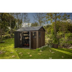 L'abri Apex 759/975 allie l'élégance du bois naturel à la praticité et à la durabilité de la résine, sublimées par une finition noyer raffinée. Il offre un intérieur spacieux, idéal pour aménager votre jardin, et grâce à l'orientation réglable de ses portes et fenêtres, il s'adapte à tous les espaces extérieurs. Robuste, facile à monter et conçu pour résister aux intempéries, c'est la solution idéale pour ranger meubles, outils et accessoires de jardin.