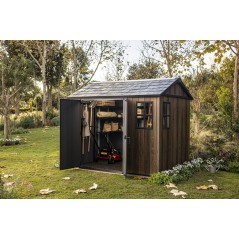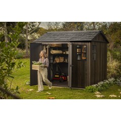 L'abri Apex 759/975 allie l'élégance du bois naturel à la praticité et à la durabilité de la résine, sublimées par une finition noyer raffinée. Il offre un intérieur spacieux, idéal pour aménager votre jardin, et grâce à l'orientation réglable de ses portes et fenêtres, il s'adapte à tous les espaces extérieurs. Robuste, facile à monter et conçu pour résister aux intempéries, c'est la solution idéale pour ranger meubles, outils et accessoires de jardin.