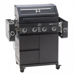 Couleur : Noir matLa station de barbecue exclusive Videro Pro G4-S noire Vario+ allie élégance et performance : avec quatre brûleurs principaux et des grils latéraux, elle vous permet de cuisiner plusieurs plats en même temps, tout en gardant tout à portée de main grâce aux tiroirs pratiques et aux tablettes latérales.