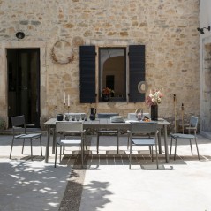 La table de jardin extensible **Oron Table Ext 200 Lattes Alu Allonge Papillon Gris Titane / Tube Titane** est une table d'extérieur élégante et robuste conçue pour accueillir **8 à 10 personnes**, avec un cadre en **aluminium ultraléger et résistant à la corrosion** et un plateau en **lattes d'aluminium** résistant aux UV et aux intempéries, facile à nettoyer et à entretenir ; grâce au système d'extension *papillon*, elle peut être étendue d'environ 200 cm à environ 260 cm d'un simple geste, offrant un espace confortable pour les déjeuners et dîners en plein air sur les balcons, terrasses ou jardins.