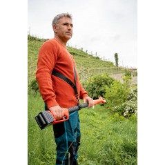 Bandoulière pour outils de perche, en polyester durable. C'est l'outil idéal pour décharger le poids de l'outil pendant le travail et faciliter son transport. Le système de fixation est réglable pour s'adapter à tous les outils de perche : la sangle de fixation antidérapante est en caoutchouc à l'intérieur pour maintenir sa position sur le manche, et à l'extérieur avec du velcro pour une fermeture stable.