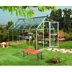 Profitez des activités de jardinage avec la serre Harmony. Remplissez le jardin de fruits et légumes biologiques et de centaines de plantes annuelles colorées cultivées dans votre serre privée. Cette magnifique serre comprend une base périmétrique en acier galvanisé en acier inoxydable qui offre un soutien, une stabilité et un alignement supplémentaires. Il est composé de panneaux en polycarbonate transparent pratiquement indestructibles, simples à glisser et à verrouiller, ainsi que d'une construction en aluminium inoxydable. La fenêtre de ventilation de la serre aide à maintenir les niveaux de température et d'humidité souhaités et favorise la circulation de l'air. Grâce à son design élégant, il est beau, robuste et pratique une fois construit, conçu pour durer.