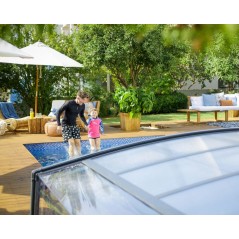 Des panneaux en polycarbonate résistants aux chocs et protégés contre les UV vous protègent, vous et votre piscine.