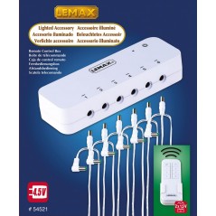 Le Remote Control Box (référence 54521) est l'accessoire idéal pour assurer une alimentation stable, sûre et efficace à votre village de Noël ou ville effrayante Lemax, sans avoir recours à plusieurs prises. Conçu avec des matériaux de haute qualité, il est équipé de six entrées et d'une télécommande à six boutons.
