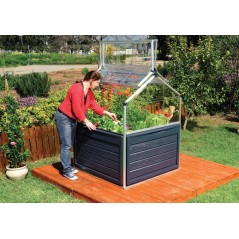 Discover the Canopia Plant-inn Mini Garden Greenhouse, perfect for growing herbs and vegetables all year round. Made of durable polycarbonate, it includes an aluminum frame, indestructible panels, an integrated compartment and a raised bed. With an adjustable lid to control humidity and temperature, it also offers an internal water drainage system and plant trellis. Easy to assemble, it is the compact solution for your gardening.