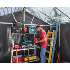 Discover the Canopia Yukon Garden Shed in Polycarbonate, the definitive solution for organizing your outdoor space. Resistant to adverse weather conditions, impacts and extreme temperatures, it offers a unique design that lets natural light pass through. Easy to install, requires no maintenance and can be anchored to solid surfaces. Ideal for storing gardening tools and accessories. Dimensions: 271x332x252 cm.
