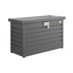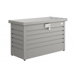 Outdoor-Koffer aus feuerverzinktem Stahlblech, Polyamid-Thermolackierung in 4 Farben: Weiß, Silbermetallic, Dunkelgrün, Dunkelgraumetallic, mit Zylinderschloss mit Drehgriff und einfachem Öffnen des Deckels dank des pneumatischen Kolbens