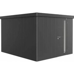 The NEO garden shed is the top product from Biohort, based on decades of experience. The smooth wall surfaces and the elegant acrylic glass band element in the door characterize the modern look. Additional glass elements can be installed flexibly thanks to a specially developed panel system.