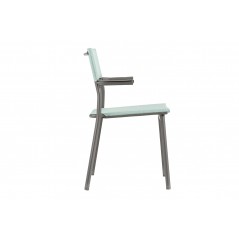 Comfort/Ergonomics: Lightweight and resistant aluminum structure. Easy access to the chair thanks to the «short» armrests. The armrests allow you to hang