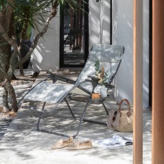 This relaxation model is the point of reference when it comes to relaxation, as it has been designed to offer the ideal position for relaxing. The principle is positioning the legs slightly higher than heart level for optimal rest. You can change position very easily according to your needs and get up without any effort: the armrests remain fixed, which allows you to have good support when you want to get up from your deckchair. The ergonomic backrest offers balanced comfort and good back support thanks to clip fastenings that reach up to shoulder height. This comfortable and easy-to-clean deckchair can easily find a place in the garden or by the pool.