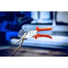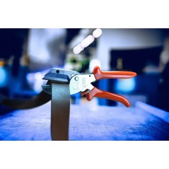 Original LÖWE cutters allow tilers to cut plastic tile guides at 45°, right angles, or freehand. Using cutters instead of saws prevents burrs from forming on the material and keeps the workspace free of chips. Suitable for softwood, plastic, and rubber.