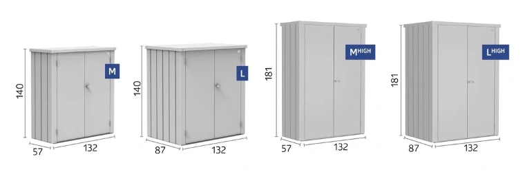 Oltre alle misure M e L, il nuovo formato HIGH offre 40 cm di altezza in più e quindi ancora più spazio per gli utensili da balcone e da terrazzo. Le colorazioni sono disponibili in tutte le misure.
