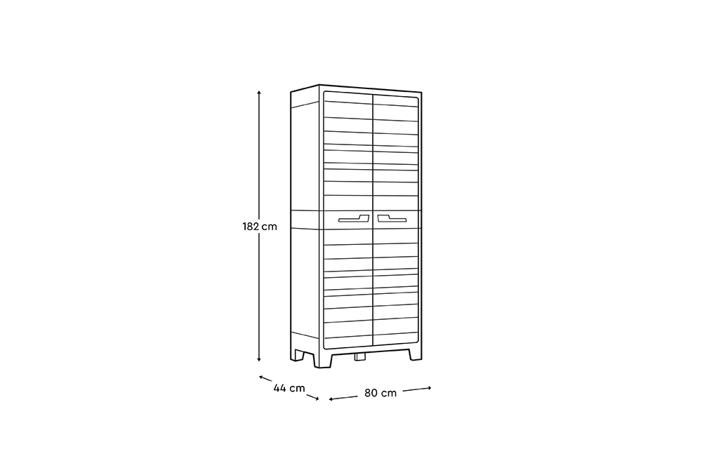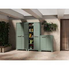 Aggiungi un tocco di stile all'organizzazione dei tuoi spazi. Planet Outdoor Alto combina un design dalle linee morbide con una struttura robusta, resistente all'acqua e ai raggi UV. Dotato di chiusura con predisposizione per il lucchetto, di 4 ripiani regolabili e di una base rinforzata con una portata massima di 30 Kg ciascuno