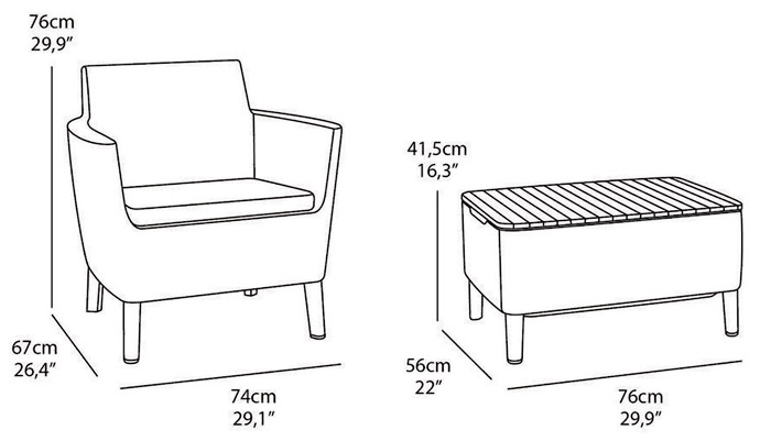 Set composto da: 2 Poltrone ed un Tavolino contenitore.
