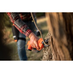Grazie alla batteria al Li-Ion ricaricabile da 2,5 Ah/14,4 V in dotazione, ha un'autonomia di ben 3 ore, che corrispondono circa a 2.000 tagli*. L’operatore può tagliare rami fino a 25 mm in modo agevole, riducendo lo sforzo e lo stress sulla mano e polso, anche grazie al design ergonomico che garantisce una comoda impugnatura e al peso leggero di soli 900 g.