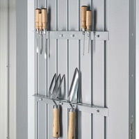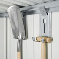 Per appendere vanghe, rastrelli, tubi d'irrigazione, ecc.; Dotazione di base: 4 unità.