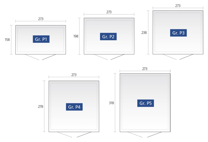 Ottima funzionalità: Montaggio della porta anche possibile nella parete laterale (Porta standard a partire della misura P2, porta a due battenti a partire della Misura P4)! Arresto porta: destra