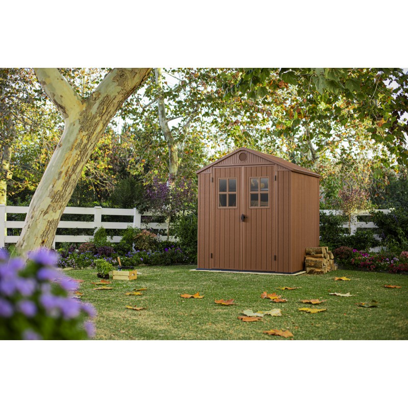 Casetta in polipropilene rinforzato, robusta e ideale per riporre attrezzi e per qualsiasi esigenza in giardino. Ottimo isolamento dalle condizioni esterne. Assemblaggio semplice ed intuitivo. Dotata di griglia di ventilazione e di due finestra fissa per massimizzare la luce naturale.