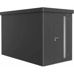 La casetta portattrezzi NEO, frutto di decenni di esperienza, rappresenta il prodotto top di Biohort. Le superfici lisce delle pareti e l'elegante elemento a fascia in vetro acrilico nella porta caratterizzano il look moderno. Elementi vetro aggiuntivi possono essere installati in modo flessibile grazie a un sistema di pannelli appositamente sviluppato.