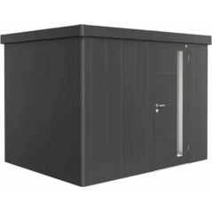 La casetta portattrezzi NEO, frutto di decenni di esperienza, rappresenta il prodotto top di Biohort. Le superfici lisce delle pareti e l'elegante elemento a fascia in vetro acrilico nella porta caratterizzano il look moderno. Elementi vetro aggiuntivi possono essere installati in modo flessibile grazie a un sistema di pannelli appositamente sviluppato.