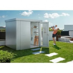 La casetta portattrezzi NEO, frutto di decenni di esperienza, rappresenta il prodotto top di Biohort. Le superfici lisce delle pareti e l'elegante elemento a fascia in vetro acrilico nella porta caratterizzano il look moderno. Elementi vetro aggiuntivi possono essere installati in modo flessibile grazie a un sistema di pannelli appositamente sviluppato.