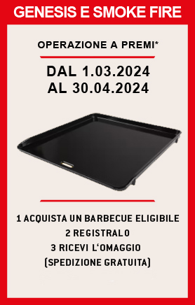 Acquista uno dei barbecue eligibili nei punti vendita Weber o su weber.com e registralo online fino al 31 maggio 2024 per ricevere una piastra gratuita del valore massimo di €99,99.