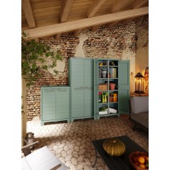 Aggiungi un tocco di stile all'organizzazione dei tuoi spazi. Planet Outdoor Alto combina un design dalle linee morbide con una struttura robusta, resistente all'acqua e ai raggi UV. Dotato di chiusura con predisposizione per il lucchetto, di 4 ripiani regolabili e di una base rinforzata con una portata massima di 30 Kg ciascuno