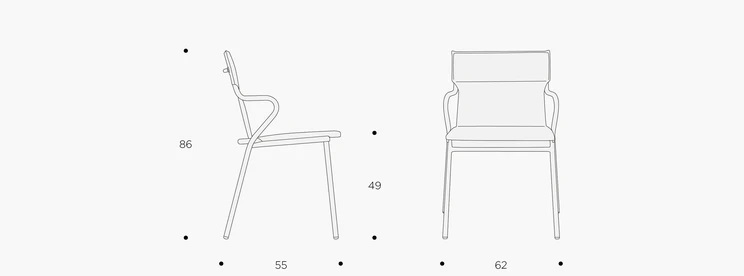 - pratica, la forma del bracciolo consente inoltre di appenderle al tavolo- le linee raffinate, le rifiniture curate, le cuciture rinforzate e i piedini delle gambe che assicurano una grande stabilità