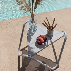 VOGUE è il tavolino ausiliare ideale per avere a portata di mano un libro, un caffè o un bicchiere di succo di frutta. Pratico grazie alla caratteristica impilabile, può anche essere utilizzato come sgabello, se necessario. Dotato di un nuovo pianale traforato che presenta un motivo delicato e raffinato.Design e originalità grazie alla sua forma triangolare molto moderna che si sposa benissimo con tutti i modelli della gamma LAFUMA MOBILIER per la terrazza, a bordo piscina e per l'interno. Tubi noir, tubi titane o tubi bianchi titane, lasciatevi sedurre dallo stile elegante e creativo.