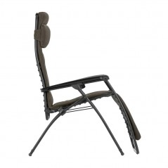 - Tela imbottita: AirComfort®, imbottitura a 3 spessori, traspirante, asciugatura rapida. Tela removibile e sostituibile con fissaggio tramite clip in elastomero (brevetto LAFUMA MOBILIER).