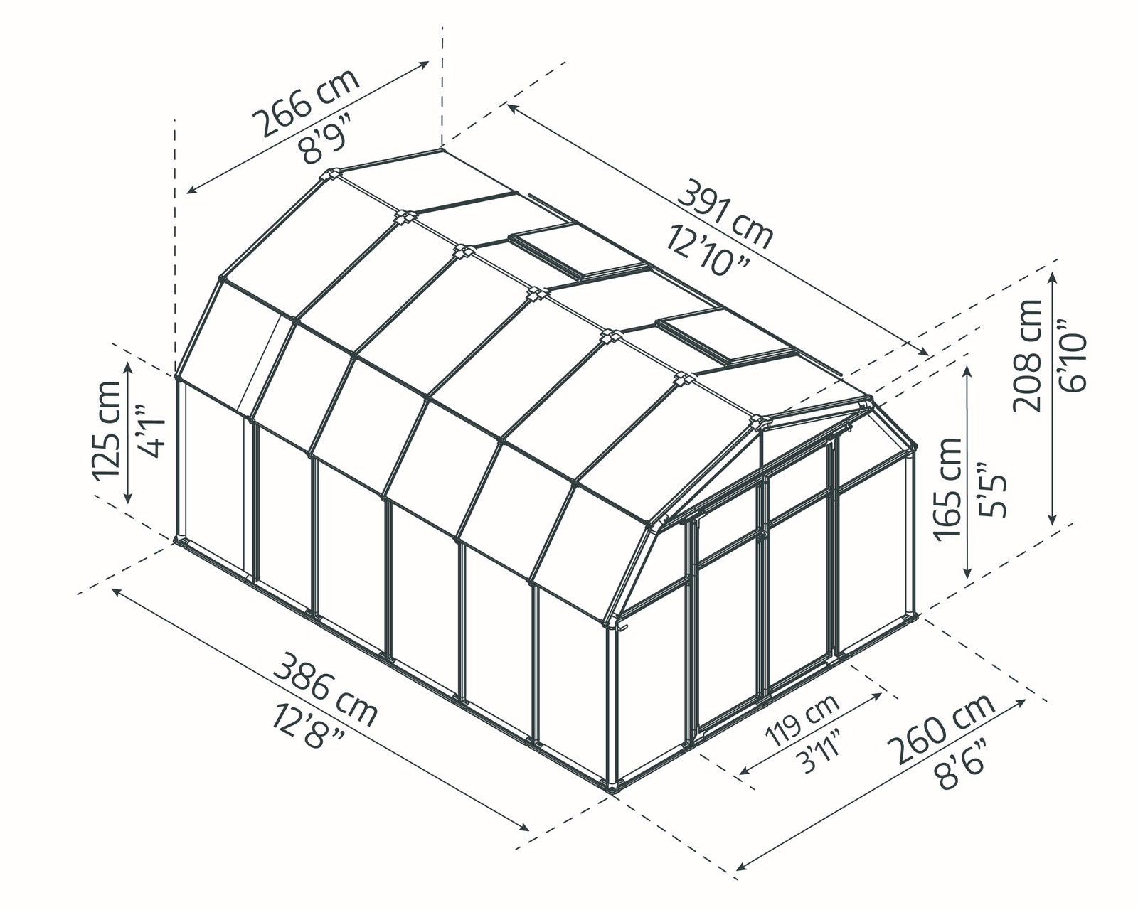 Scopri la Serra da Giardino Canopia Hobby Gardener, robusta e facile da montare. Con pannelli in policarbonato a doppia parete, offre resistenza e sicurezza. Il suo telaio in resina protegge dai raggi UV, mentre la sua struttura a forma di fienile offre un comodo spazio di lavoro. Perfetta per gli appassionati di coltivazione, garantisce un'ottima diffusione della luce e un isolamento termico superiore. Dimensioni: 391x266x208 cm. Montaggio fai-da-te, senza necessità di manutenzione.