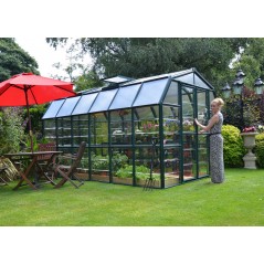 La serra Palram - Canopia Grand Gardener è caratterizzata da un'elegante forma a fienile e da un design a finestra che rende la vostra serra splendida ancora prima che abbiate piantato qualcosa. L'enfasi sulla sicurezza è evidente dal telaio resistente ai pannelli in policarbonato estremamente sicuri. Il robusto telaio in resina estrusa, resistente alle intemperie e protetto dai raggi UV, con i suoi profili del tetto in alluminio, migliora sia l'isolamento totale che la durata. Le pareti laterali in policarbonato cristallino offrono una vista chiara, mentre i pannelli del tetto a doppia parete diffondono oltre l'80% della luce solare per una luce morbida e uniforme. L'attenzione ai dettagli prosegue attraverso il design del tetto che fornisce ampio spazio per la testa e più spazio al giardino, fino alle doppie porte che rendono facile entrare e uscire, anche con grandi vassoi di piante. C'è anche un'eccellente ventilazione grazie alla presa d'aria sul tetto, che fornisce un flusso d'aria e trattiene il calore quando le porte sono chiuse. Il montaggio con perno e serratura rende la serra Palram-CanopiaGrand Gardener perfetta per l'appassionato di coltivazione che vuole qualcosa di facile e bello