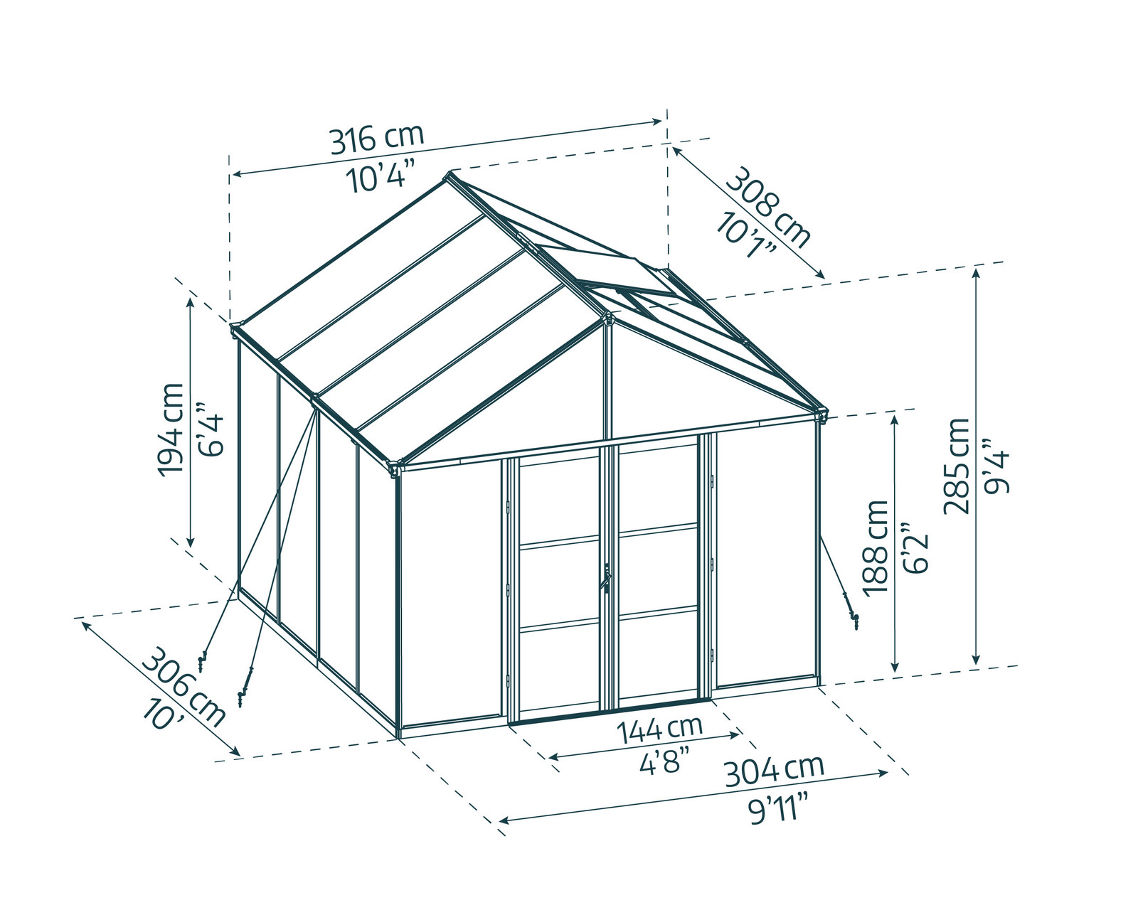 Scopri la Serra da Giardino Canopia ARIA Ibrida in Policarbonato, un rifugio sereno per gli amanti della natura. Con un design sofisticato e pannelli trasparenti, offre un ambiente luminoso e accogliente per le tue piante. Resistente alle intemperie, facile da montare e con una garanzia di 10 anni, trasforma il tuo spazio esterno in un angolo di benessere. Dimensioni: 308x304x285 cm. Colore: Nero.