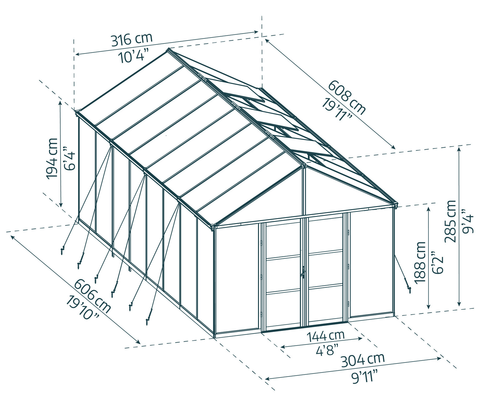 Ti consigliamo di verificare presso le autorità locali i requisiti urbanistici e le eventuali autorizzazioni necessarie prima dell’installazione. Assicurati di installare la serra su una superficie piana e livellata, con una base solida.