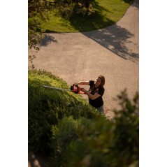 La lama, lunga 50 cm, è dotata di una protezione in punta che permette di rifinire il lavoro attorno all‘intera siepe senza danneggiare altri oggetti.