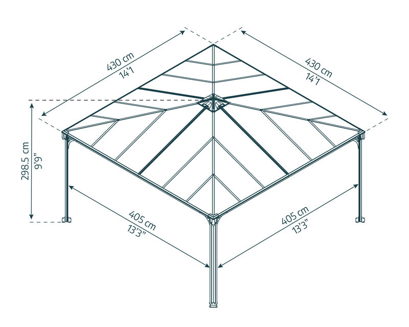 Scopri il Gazebo Canopia Palermo in Alluminio 4.3X4.3 m, l'ideale per arricchire il tuo spazio esterno con eleganza e funzionalità. Resistente alle condizioni meteo avverse, offre protezione dai raggi UV e un'ombra rilassante. Facile da installare, con pannelli in policarbonato infrangibili e telaio in alluminio inossidabile. Perfetto per grigliate o relax in spa, con ventola superiore per circolare aria e fumo. Include grondaia, piedini e kit di ancoraggio. Aggiungi un tocco di stile al tuo giardino con Canopia.