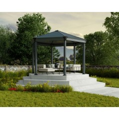 Il gazebo da giardino Roma è progettato per essere riposto in giardino o cortile. Resiste a venti forti (120 km/h) e nevicate pesanti (250 kg. m²). Puoi usufruire di questo gazebo di lusso durante giornate piovose o soleggiate. Permette di organizzare eventi in famiglia, cene o semplicemente rilassarsi comodamente.Il gazebo da giardino Roma aggiunge classe al giardino e offre uno spazio riparato e privato per la famiglia. Rende lo spazio esterno più piacevole, favorendo relax dopo una giornata faticosa passando del tempo in giardino, leggendo un libro, bevendo un bicchiere di vino o semplicemente stando al fresco. Perfetto per riparare area spa o relax, barbecue o per una cena romantica in due.Trasforma l'area esterna in uno spazio elegante utilizzabile tutto l'anno!
