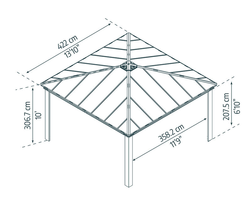 Aggiungete una nuova qualità al vostro giardino o cortile e trasformatelo nel cuore dell'area relax della vostra casa, un rifugio privato. Lo spazio vitale del giardino di Dallas offre un senso di privacy e fornisce un'area ombreggiata da utilizzare tutto l'anno. È ideale per la vostra famiglia che si riunisce, ospitando un barbecue o rilassandosi nel vostro centro benessere all'aperto, così come per godersi l'aria fresca e la vista del vostro giardino. Questo gazebo altamente robusto e durevole è costruito per durare con la sua combinazione di telaio in alluminio verniciato a polvere grigio scuro resistente alla ruggine e pannelli del tetto in policarbonato praticamente infrangibili, che proteggono dall'impatto dannoso del sole per molti anni di divertimento. Godetevi una vita di qualità all'aperto al suo meglio!