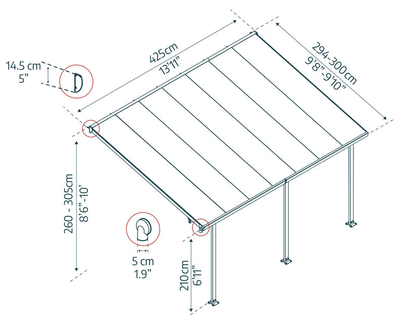 Godetevi la vita all'aperto con la copertura per patio Palram - Canopia Feria. Utilizzate questa copertura estetica e priva di manutenzione come copertura per patio, tettoia, solarium o spa: date libero sfogo alla vostra immaginazione. Godetevi le riunioni di famiglia e i barbecue senza lasciare che il tempo capriccioso rovini il divertimento. Questa struttura ad alte prestazioni è progettata per essere facilmente assemblata da due persone, utilizzando il sistema di copertura Click N' Lock per un montaggio facile e sicuro, che blocca le vetrate tra le barre della struttura e impedisce all'acqua di entrare nelle vetrate. Non richiede esperienza, né competenze o strumenti particolari. Feria offre alla vostra famiglia un riparo elegante, robusto e privo di ruggine per gli anni a venire.