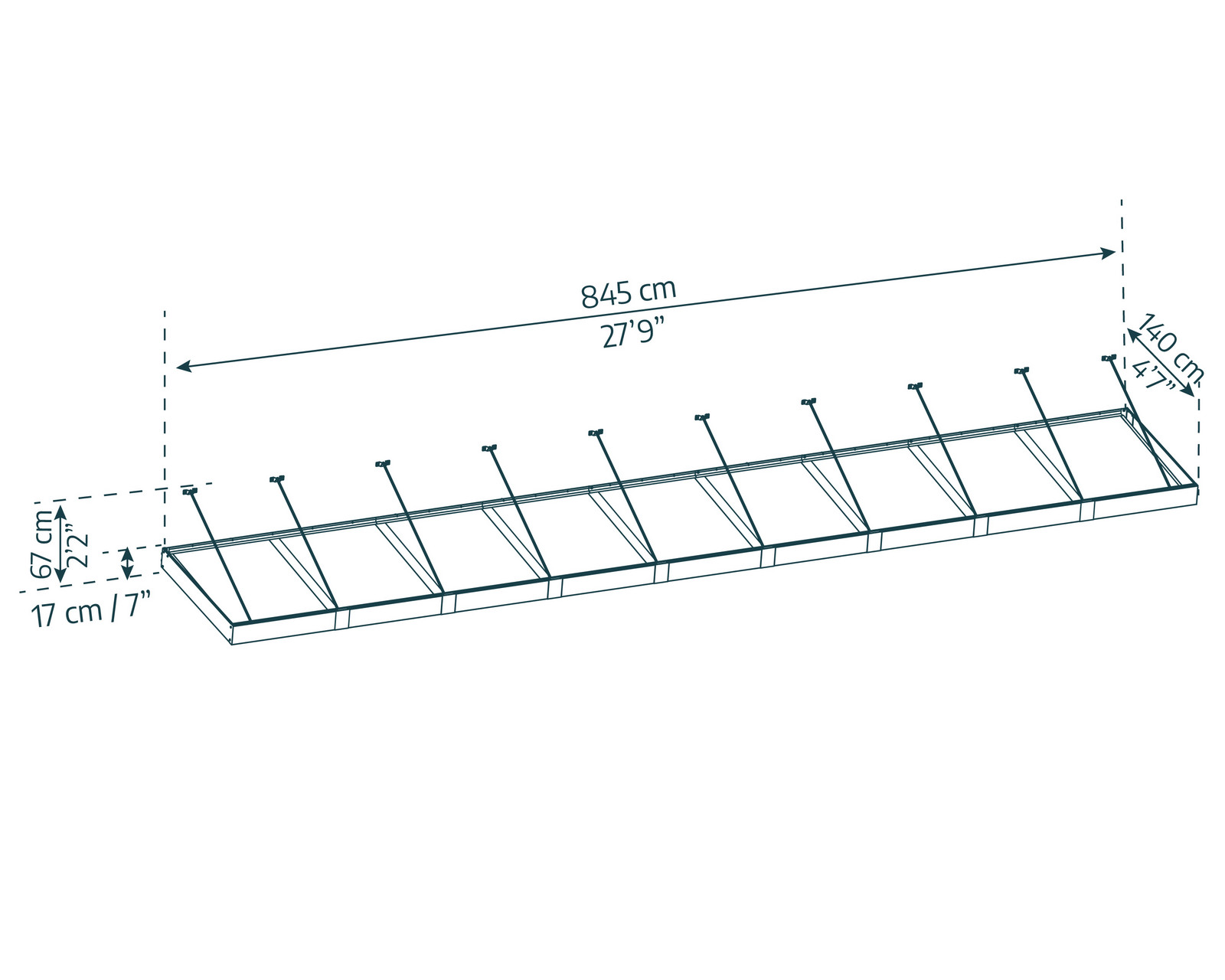 La Sophia XL è l'epitome dello stile e della funzionalità moderna: il nostro portico extra-largo e profondo è una soluzione elegante per elevare la tua casa. Realizzato con precisione, questo portico contemporaneo offre una protezione estesa che va oltre le dimensioni standard (letteralmente, con oltre 1,4 metri di profondità, è più profondo della maggior parte dei copriporta). Progettato per fare una dichiarazione, il nostro portico può essere installato senza soluzione di continuità l'uno accanto all'altro per aggiungere copertura al tuo patio posteriore, all'ingresso, alle finestre, o anche sopra il portone del garage. Le linee eleganti e il design minimalista della cornice in alluminio grigio con pannelli trasparenti creano un'aggiunta visivamente sorprendente alla tua casa, offrendo un ingresso accogliente sia per i residenti che per gli ospiti. Questo portico ultra-resistente è facile da installare ed è progettato per resistere alle condizioni meteorologiche più difficili in modo che tu, le tue cose e la tua porta siano protetti per gli anni a venire. Con il portico Sophia XL, ottieni la protezione di cui hai bisogno nel look che desideri.
