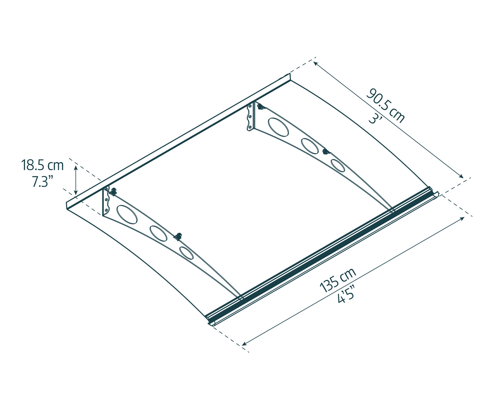 La pensilina per porta Garamond 135X90 elegante e ben progetta offre protezione per porte di ingresso o finestre. La grondaia frontale spinge pioggia e neve di lato, tenendo l'ingresso pulito, mentre il pannello in policarbonato resistente a raggi UV al 100% da 3 mm trasparente anti-rottura filtra i raggi del sole e non scolorisce nel tempo. Aggiungi valore alla tua casa o proprietà con un tettuccio per porta fai da te. Realizzato per durare negli anni, fornito con tutti gli accessori di montaggio, oltre che sistema di blocco che rende l'installazione ancora più semplice.