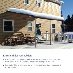 Valorizzate il vostro spazio esterno con la copertura per patio Palram - Canopia Sierra, una soluzione di copertura esteticamente gradevole e versatile. Godetevi il vostro spazio all'aperto tutto l'anno con questa aggiunta elegante e robusta. Godetevi le riunioni di famiglia e i barbecue senza preoccuparvi che il tempo capriccioso possa rovinare il vostro divertimento. Sierra è una soluzione estetica, versatile e priva di manutenzione, adatta a una varietà di applicazioni esterne, come tende da sole per balconi o patio, lettini, tende per porte, ecc.Sierra è una struttura di posizionamento potente e flessibile che consente di impostare l'altezza desiderata all'attacco della parete, la distanza dalla casa e tra i pali ovali frontali. È progettata per essere facilmente assemblata da 2 persone, con il sistema di pannelli scorrevoli che garantisce un montaggio facile e sicuro; non richiede esperienza, né abilità particolari, né strumenti speciali. Sierra offrirà alla vostra famiglia uno spazio di vita all'aperto elegante, robusto e privo di ruggine per gli anni a venire.